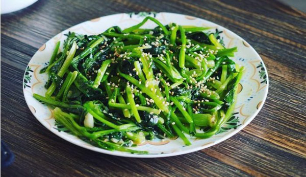 做法:先把菠菜去根洗凈,在開水鍋中滾燙—下,撈出浸入涼水中,涼后撈出控干水分,切成段。再把菠菜段放入盤內,分別加入鹽、味精、香油,攪拌均勻,再把芝麻撒在菠菜上即可。此款功效是補肝益腎,開胸潤燥。