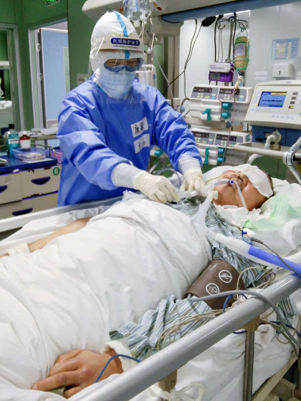 在武漢,唐敏被分配到協和醫院西院重癥監護室工作,經過培訓,她便踏上了抗疫的戰場。“ 推開門,我又見到了熟悉的場景,患者安靜的躺在床上,放眼望去,白茫茫一片,心電監護、呼吸機、輸液泵、微量泵、CRRT 、ECMO 等等,因為差異,很多地方需要學習,我們要快速適應新的工作環境,方法,流程,制度。立即參與戰斗中去,和新認識的同志一起并肩作戰。