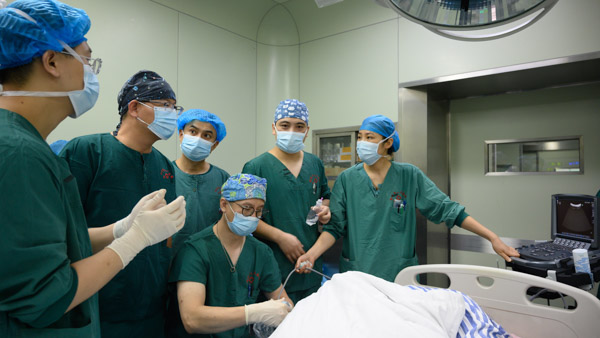 在麻醉完成后,中醫(yī)肛腸科主任劉春強(qiáng)博士立即接手患者,為其進(jìn)行手術(shù)治療,由于患者碩大的體型,給手術(shù)也帶來(lái)了不小的難度,在兩名助手的幫助下,劉春強(qiáng)用自己的豐富經(jīng)驗(yàn)和嫻熟的操作克服諸多操作不便,僅僅20分鐘,手術(shù)便完美收官。