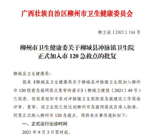 9月3日,沖脈鎮衛生院120急救點通過復評,正式加入柳州市急救網絡。沖脈鎮衛生院將繼續優化配置急救資源,完善急救體系,縮短院前急救病人的急救反應時間和出車時間,提高院前急救的質量與效率,更好的完善急診科建設,提高急救隊伍素質,更好的服務于廣大患者,為群眾提高更加高效便捷、更優質的醫療服務。