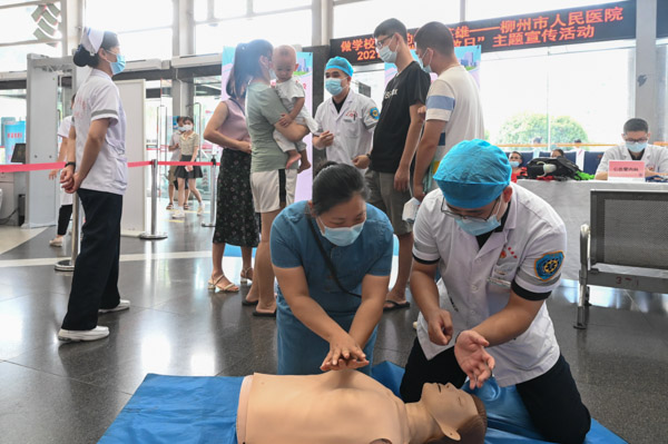 2021年9月11日是第22個“世界急救日”,今年急救日的主題為“做學(xué)校、社區(qū)的急救英雄”。9月17日上午,我院預(yù)防保健科組織急診醫(yī)學(xué)科、心血管內(nèi)科、神經(jīng)內(nèi)科、兒科在醫(yī)院門診大廳舉行主題宣傳活動。秉承“我為群眾辦實事”理念,幫助更多人掌握應(yīng)急救護(hù)知識和急救技能,在突發(fā)緊急情況時能夠及時挽救生命。
