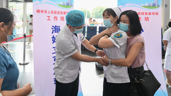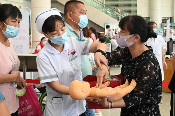 活動現(xiàn)場不但舉行了義診活動,還有急診醫(yī)學(xué)科醫(yī)護(hù)人員向廣大群眾講解心肺復(fù)蘇術(shù)和海姆立克急救法的使用技巧,通過真人演示、模型人教具操作,讓群眾主動參與現(xiàn)場互動,共發(fā)放急救宣傳手冊100余本。