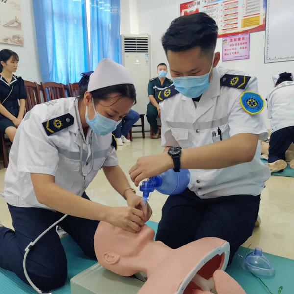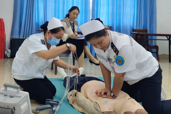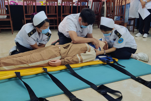 現場評審專家組依次對急救人員進行了急救理論知識網上考試和成人氣管插管、成人基礎生命支持、脊柱損傷與固定搬運等急救技能的考核,各項考核表現優異。