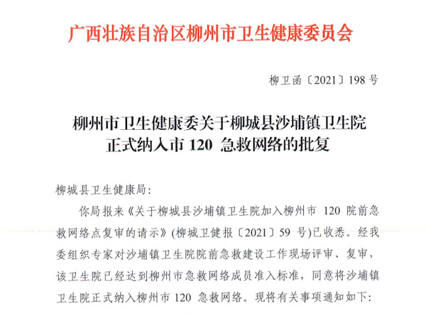 沙埔鎮衛生院120急救點通過復評,正式加入柳州市急救網絡。到目前為止,在我院的大力幫扶下,已有9家基層醫療機構順利加入市120急救點,成為柳州市醫聯體牽頭單位中幫扶建設最多的單位。各基層醫療機構120急救點的成功建立,進一步提高了縣域、城區院前急救網絡覆蓋率,院前急救體系建設得到進一步推進,大大縮短本轄區內的搶救時間和路程,為救治生命提供了更多的保障。同時,在此基礎上我院提出更高的要求,以醫聯體,醫共體為突破口,加大對柳州市人民醫院的縣二級、鄉一級對口支援醫療機構的技術支持,提高對口支援單位醫療水平和醫療質量,切實解決人民群眾就醫難的問題。希望緊密型醫聯體單位柳城縣人民醫院對醫共體的幫扶力度只增不減,特別是在胸痛中心、腦卒中救治單元等方面的建設提出可行性建議和指導,為織牢織密柳州市醫療救治網做出貢獻。