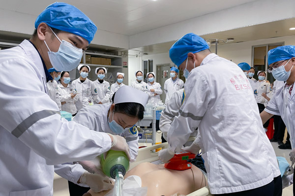為切實保障醫(yī)療安全,進一步提高我院急診醫(yī)護人員應(yīng)急救援水平及團隊協(xié)調(diào)能力,11月2日下午,急診醫(yī)學(xué)科開展了一次突發(fā)事件應(yīng)急演練暨醫(yī)護配合急救技能競賽,由科主任、護士長及二線醫(yī)師擔(dān)任考官,共有醫(yī)護人員50余人參加比賽。