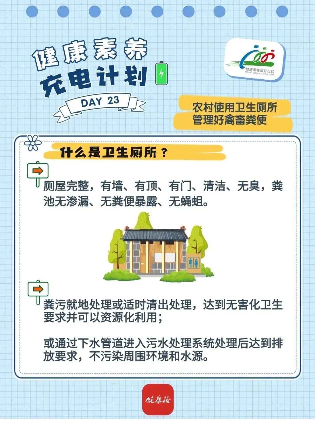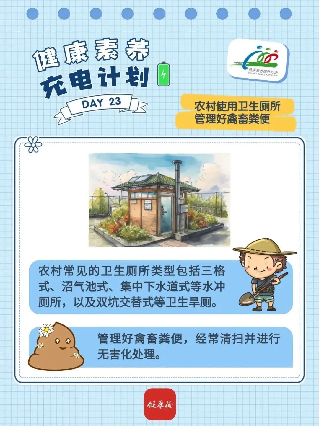 農(nóng)村使用衛(wèi)生廁所,管理好禽畜糞便。