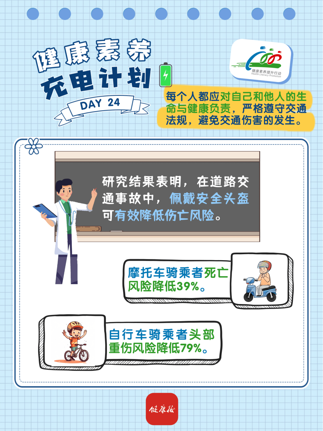 戴頭盔、系安全帶;不超速、不酒駕、不分心駕駛、不疲勞駕駛;兒童使用安全座椅,減少道路交通傷害。
