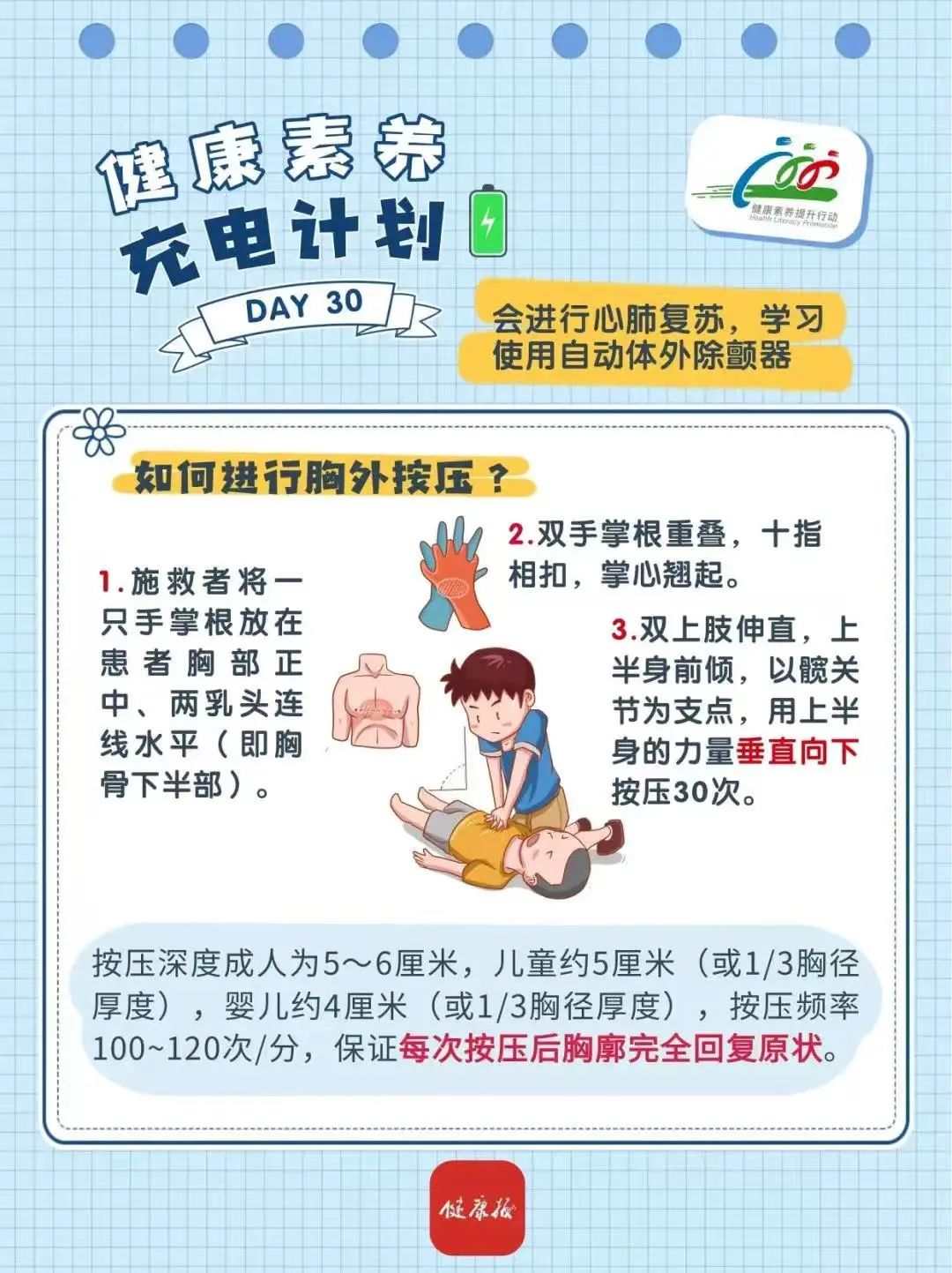 健康素養(yǎng)66條(2024版)(60)|心肺復蘇怎么做、AED怎么用?