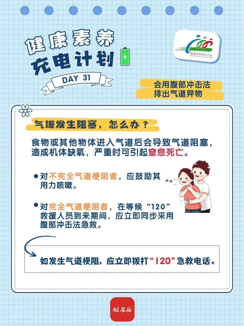 健康素養66條(2024版)(62)丨燒燙傷、氣道梗阻應該如何有效處理和施救?