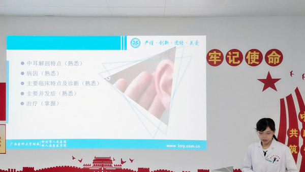 為進一步提高青年教師教學能力和水平,夯實青年教師教學基本功,提高課堂教學質量, 近日,柳州市人民醫院五官科教研室2022年教學基本功比賽拉開了帷幕,前期經過各科室初賽評比,最終有5名青年教師脫穎而出,站在了決賽的賽場。