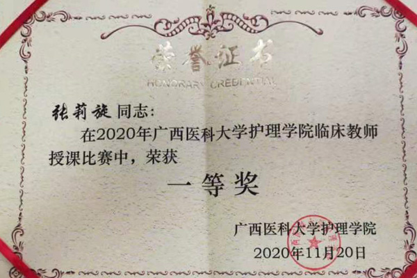 11月20日,由廣西醫科大學護理學院主辦的2020年廣西醫科大學護理學院臨床教師授課比賽在廣西南寧舉行,經過激烈的角逐,我院選派的乳腺甲狀腺外科一病區張莉旋老師在全區30名優秀選手中脫穎而出,勇奪第一。