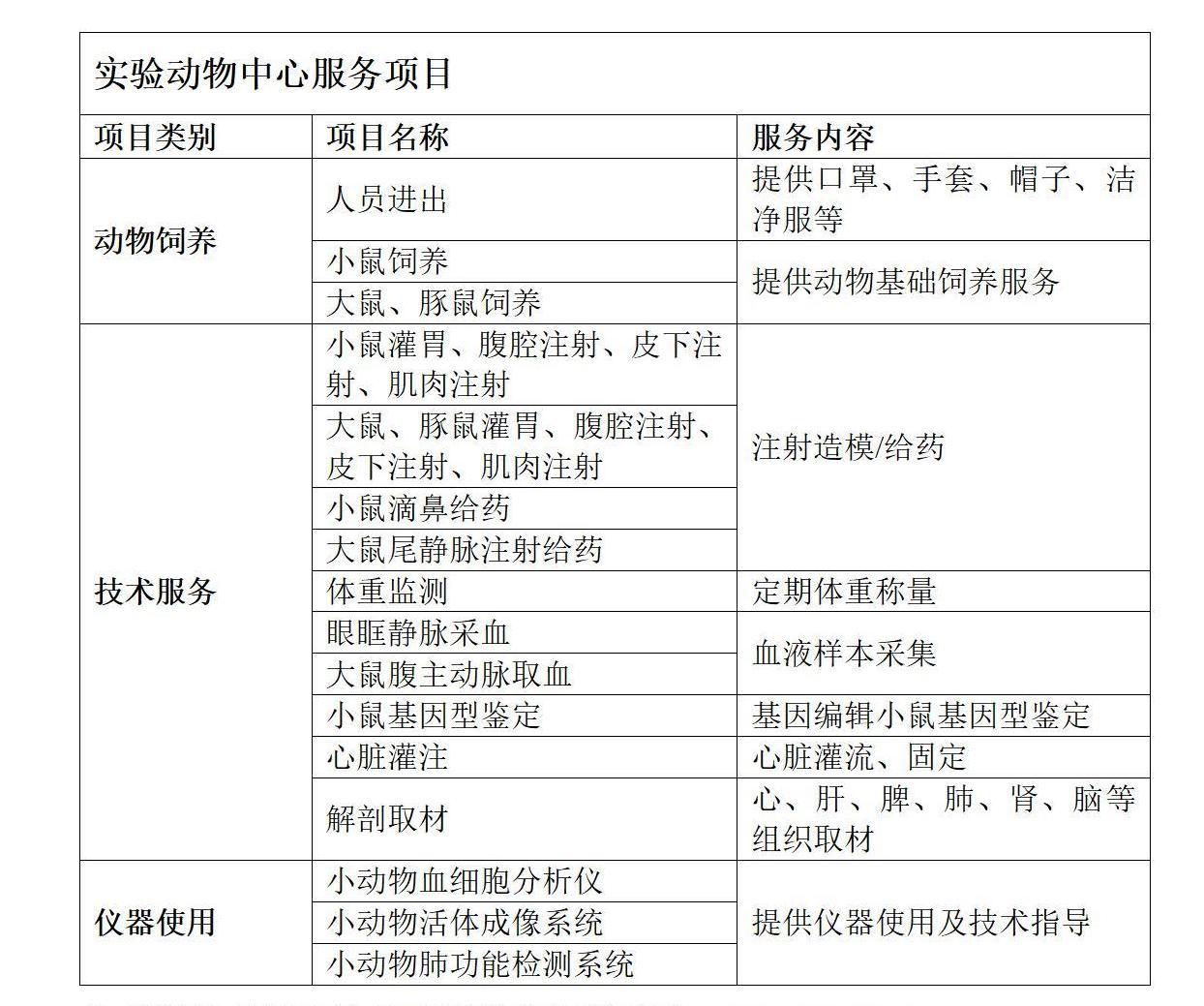 醫(yī)學(xué)科學(xué)實(shí)驗(yàn)中心向院內(nèi)外科研人員提供有償服務(wù),服務(wù)項(xiàng)目如下: