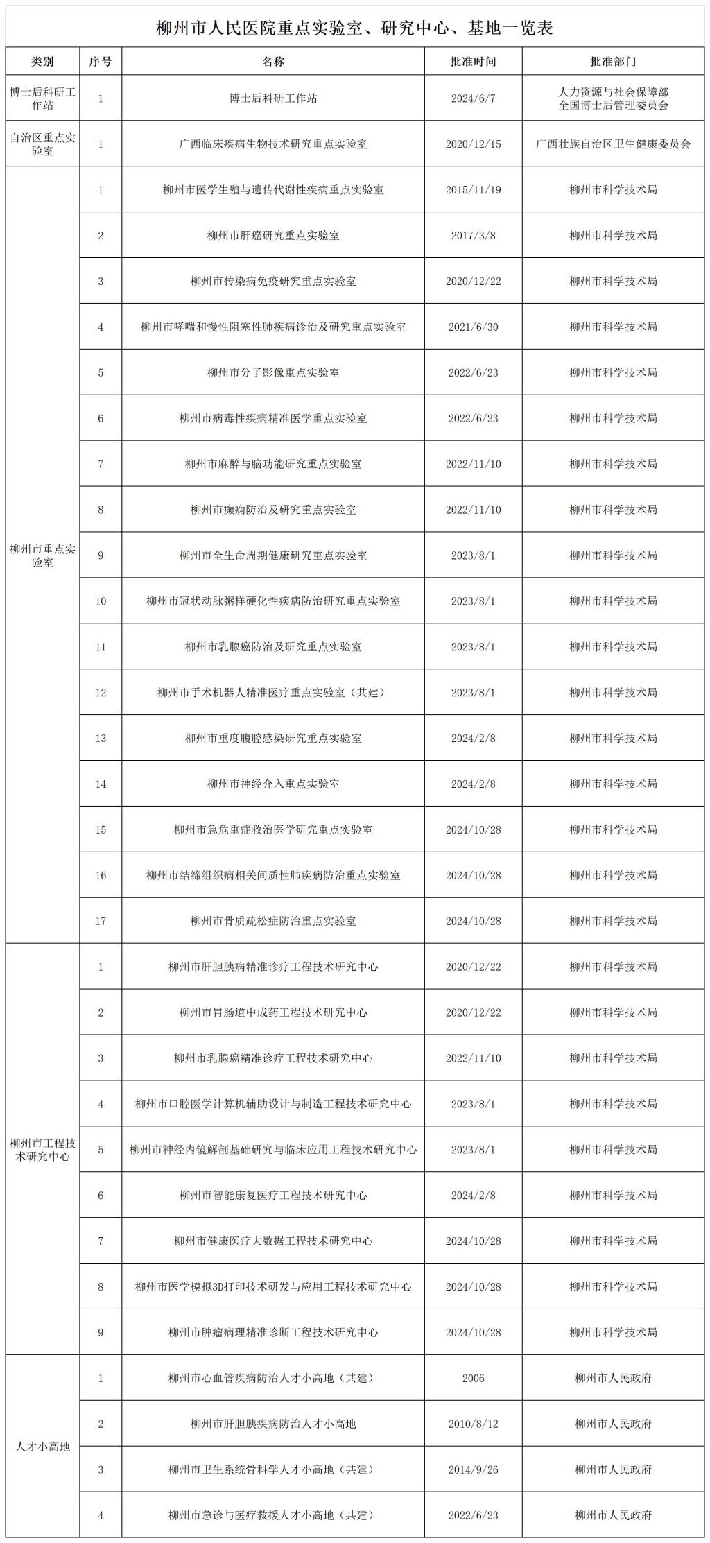 柳州市人民醫(yī)院重點(diǎn)實(shí)驗(yàn)室、研究中心、基地一覽表