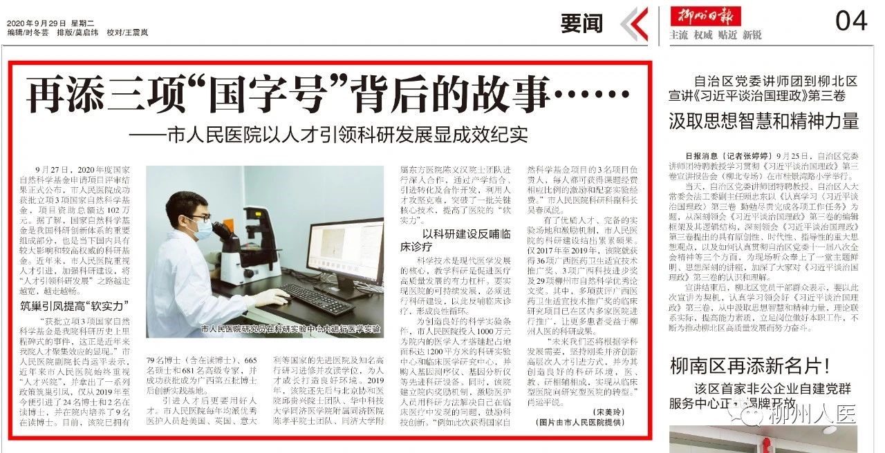 【喜訊】再添三項(xiàng)國(guó)家自然科學(xué)基金項(xiàng)目——柳州市人民醫(yī)院以人才引領(lǐng)科研發(fā)展顯成效