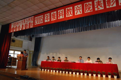 2006年 4月4日下午《廣西醫(yī)科大學第五附院、柳州市人民醫(yī)院2005年度科教表彰大會》在醫(yī)院大禮堂隆重舉行,大會由胡世紅書記主持,黃健輝院長宣布了“關于表彰獎勵醫(yī)院2005年度科技工作優(yōu)秀集體和個人的決定”,會上李兵副院長發(fā)表了重要講話,講話對2005年醫(yī)院科技工作進行了總結,并對2006年科技工作提出了希望。會議表彰獎勵了我院醫(yī)務人員榮獲的2005年度新技術項目97項(一等獎3項、二等獎7項、三等獎30項、四等獎57項),及科技興科優(yōu)勝科室12個。并對榮獲廣西和柳州市科技進步獎的人員進行了表彰獎勵。