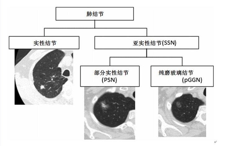 結節,只是影像學上的一個描述性名詞,指的是病灶的大小,而不是病灶的性質。在影像檢查中(如CT或胸片)發現類圓形的直徑小于3cm的病灶通常描述為結節灶,當直徑小于1cm時常被描述為“小結節”,而直徑小于0.5cm時就被稱為微小或細小結節。肺內結節或小結節分為良性、惡性兩種。常見的肺內結節或小結節包括球形肺炎、結核球、錯構瘤良性、纖維增生等,癌前病變為不典型腺瘤樣增生,惡性病變則有可能是原發性肺癌或肺內轉移癌。當然部分良性病變長時間之后也可能轉化為惡性。根據結節的密度不同,可以分為純磨玻璃結節、部分實性磨玻璃結節和純實性結節。在這三類結節中,惡性病變分別占18%、63%、7%。初次CT檢查發現的肺部小結節,80%-90%都是良性病變,但卻要高度重視,因為仍有一定比例的早期肺癌,定期檢查必不可少。