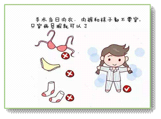 3.手術(shù)當(dāng)日清晨您可以洗臉?biāo)⒀溃荒茱嬎趴沾笮”恪8鼡Q好病號服,不能穿內(nèi)衣、內(nèi)褲,取下假牙、飾品、發(fā)卡、手表、眼鏡,不帶手機及貴重物品進入手術(shù)室。
