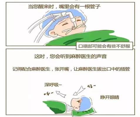 8.當(dāng)手術(shù)結(jié)束蘇醒后,請您不要緊張,聽從復(fù)蘇護士的指揮,配合復(fù)蘇護士進行氣管導(dǎo)管的拔除。