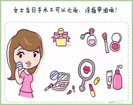 4.在手術(shù)當(dāng)日盡量素顏,避免涂抹指甲油。化妝會影響醫(yī)生對手術(shù)患者面色的判斷,指甲油膠會影響血氧儀的數(shù)據(jù)監(jiān)測。