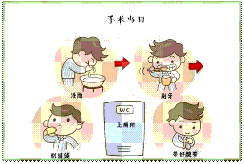 2.手術(shù)前一日洗澡,或擦拭手術(shù)部位皮膚,保持清潔。術(shù)前一日晚上好好休息,注意保暖,按護士的術(shù)前宣教禁食禁飲。