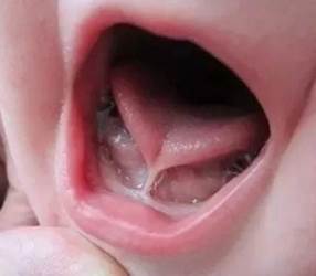 在醫學上有一種潰瘍稱之Riga-Fede潰瘍 ,又叫李-弗氏潰瘍,是指嬰兒舌腹的一種增殖性潰瘍,多見于舌系帶過短、下切牙初萌出的嬰兒。舌系帶過短患兒舌前伸時,系帶與下切牙切緣摩擦,可能導致創傷性潰瘍,因疼痛而影響舌的運動,患兒啼哭不安,進食困難。因此,可推薦舌系帶過短的創傷性潰瘍患者行舌系帶手術。