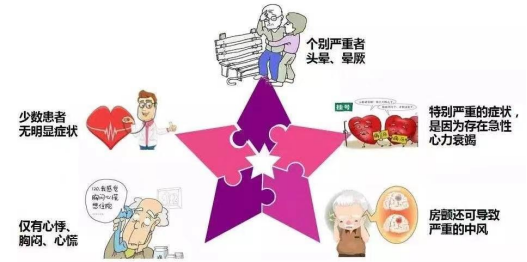 要識別心房顫動,我們需留意它的常見癥狀,大部分房顫患者表現(xiàn)為心慌心悸、胸悶胸痛、呼吸困難、頭暈黑朦、乏力、暈厥等癥狀。并且在房顫發(fā)作時,患者心房收縮功能減弱,可能導(dǎo)致血液逐漸凝結(jié)形成附壁血栓,脫落后堵塞血管,阻斷腦部供血誘發(fā)中風(fēng)。此外,心房顫動還可能導(dǎo)致心力衰竭,嚴(yán)重影響患者的生活質(zhì)量和預(yù)期壽命。但也有部分房顫患者無任何癥狀,這也是為何該病經(jīng)常被忽視的原因之一,這可能導(dǎo)致卒中或死亡等嚴(yán)重后果,無聲息的危害患者的健康,所以又稱為“隱形殺手”。