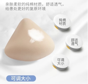 特點(diǎn):質(zhì)地輕盈、柔軟親膚、透氣性好(純棉材質(zhì)),避免給愈合中的傷口帶來負(fù)擔(dān),提供舒適感。可調(diào)大小設(shè)計(jì)適應(yīng)術(shù)后變化。避免使用有重量的硅膠義乳。