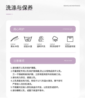 正確的清潔保養(yǎng)能延長義乳使用壽命(一般為5-8年),確保衛(wèi)生舒適: