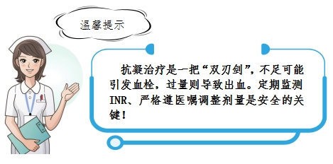 4.定期抽血檢查INR華法林劑量調整需要監測INR,建議服藥期間,記錄INR結果和華法林劑量。首次服用華法林時,建議每隔3-5天監測一次INR,隨后每周測定一次,當INR穩定后,可以每4周監測1次。如果需調整劑量,應重復前面所述的監測頻率直到INR再次穩定。心臟瓣膜置換術后推薦的目標INR值范圍為1.8-2.6,因個體差異原因,目標NIR值應聽從醫生的指導。