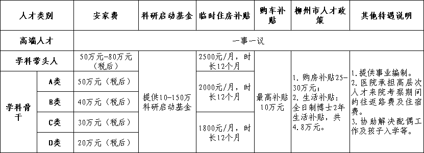 2.柳州市人才引進相關待遇根據入職時的柳州市人才政策執行。