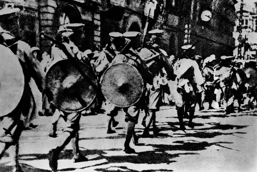 圖為武漢革命軍1927年1月3日進(jìn)入漢口英租界進(jìn)行接管的情形 新華社圖片