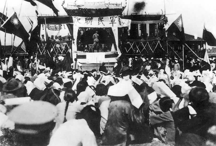 圖為北伐軍攻克武昌,武漢軍民舉行聯(lián)歡大會 新華社圖片