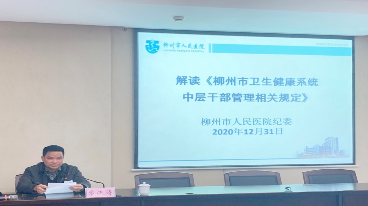 隨后,紀委書記廖流濤、紀委委員黎洪、紀檢監察室副主任潘璇分別對《柳州市衛生健康系統中層干部管理相關規定》《柳州市關于加強黨員干部“八小時外”監督管理的意見(試行)》《柳州市各級黨委(黨組)運用監督執紀“第一種形態”指導意見(試行)》等文件進行解讀,通過建章立制強化學習、推動實踐運用,切實提升紀檢監察干部履職能力。