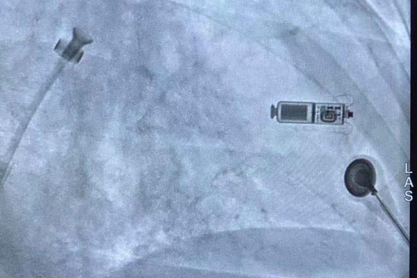 我院心內(nèi)科團(tuán)隊(duì)經(jīng)過縝密分析,認(rèn)為經(jīng)導(dǎo)管無導(dǎo)線起搏器植入技術(shù)能很好地解決患者的疑慮。該起搏器不需要植入心內(nèi)膜導(dǎo)線,也不需要在胸前皮下制作囊袋放置脈沖發(fā)生器(起搏器),減少了創(chuàng)傷、電極故障與并發(fā)癥,也顯著降低了感染風(fēng)險(xiǎn)。無導(dǎo)線起搏器直接植入于心腔內(nèi),體外無任何疤痕組織殘留,患者在植入后幾乎感覺不到起搏器的存在,大大改善了患者的生活質(zhì)量。