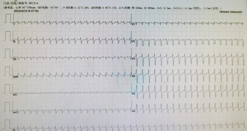 42歲的唐女士受心悸困擾多年,1月前因心悸再發(fā)被加速送至柳州市人民醫(yī)院急診醫(yī)學科,經(jīng)心電圖檢查提示窄QRS波心動過速,心率220次/分,考慮室上性心動過速,先后予以藥物復律、食道調(diào)搏以及電復律,但患者心律均未能轉(zhuǎn)復竇性心律,并且出現(xiàn)了全身大汗、皮膚蒼白、血壓下降等休克癥狀,甚至出現(xiàn)了一過性心臟停搏!