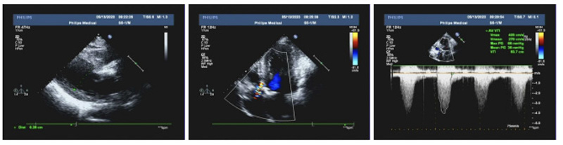 患者主動(dòng)脈瓣口面積小,鈣化嚴(yán)重,為手術(shù)帶來了很大困難,術(shù)者小心翼翼地將導(dǎo)絲送入患處,跨瓣、瓣膜定位、釋放球囊……凌晨4:20,隨著大鞘的退出,標(biāo)志著一場與死神賽跑以勝利謝幕。在多學(xué)科緊密協(xié)作下,急診TAVR手術(shù)圓滿成功,患者術(shù)后血流動(dòng)力學(xué)指標(biāo)即刻得到改善,跨瓣壓差從160mmHg下降到僅為5mmHg!復(fù)查心臟彩超提示主動(dòng)脈瓣狹窄完全解除!患者各項(xiàng)生命征數(shù)值平穩(wěn),病情轉(zhuǎn)危為安!