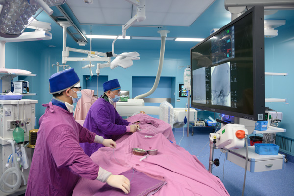 “最近,醫院復合手術室的啟用,也讓神經外科腦血管病的診治上了一個新的臺階,我們也即將開展復雜腦血管病復合手術。”吳剛說,比如說一例慢性硬膜下血腫的病人,以前只能把顱內的血引流出來,但是我們發現有部分病人會復發,在復合手術室我們就可以在將血引流出來的同時將囊壁上的血管堵塞,這樣就能減少類似病情復發的可能性,也大大縮減了手術時間,減輕了病人的痛苦。下一步我們還將在復合手術室中配備顯微鏡,就可以開展更多高難度手術。