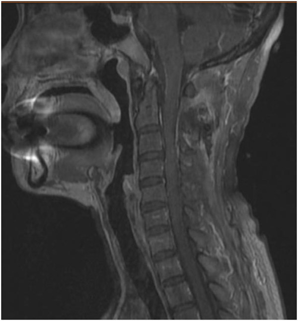 58歲的蘭女士因胸部束縛感2年,左上肢麻痛1年在當?shù)蒯t(yī)院就診,經(jīng)檢查發(fā)現(xiàn)患者高位頸髓區(qū)域有一顆巨大腫瘤,手術(shù)風險大,術(shù)后出現(xiàn)高位截癱的可能性非常高。為求更好的治療方案,蘭女士輾轉(zhuǎn)了多家醫(yī)院,最終來到了柳州市人民醫(yī)院神經(jīng)外科。