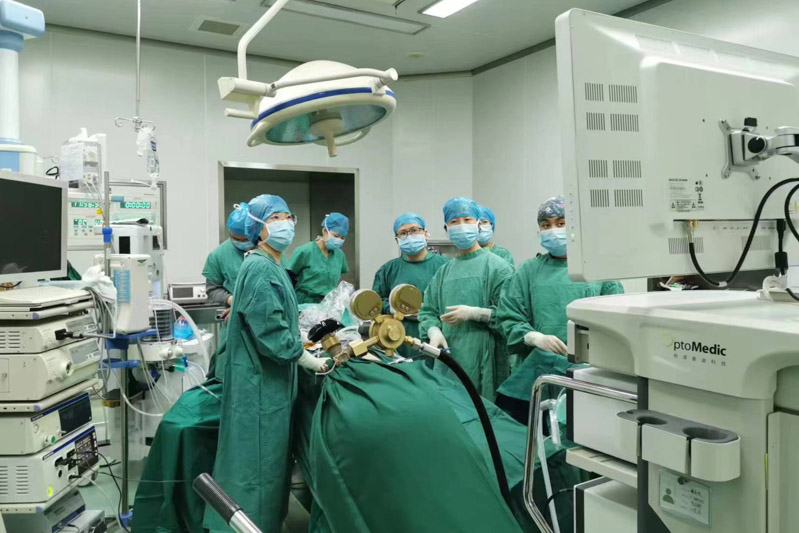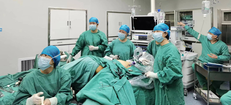 活動當天,柳州市人民醫院婦科團隊與鹿寨縣人民醫院婦科通力合作,為一例早期子宮內膜癌患者進行了手術。