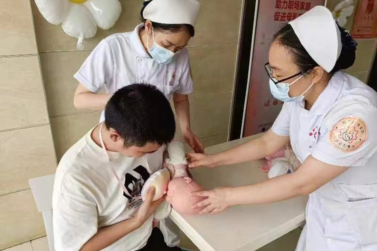 8月1日上午,在柳州市人民醫院孕婦學校,柳人醫產科世界母乳喂養周系列活動正式啟動。30多名準媽媽準爸爸整齊坐在教室里,跟著醫護人員學習新生兒嗆奶的處理方法。