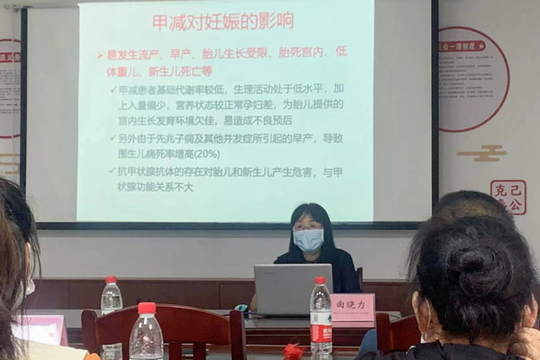 課上,曲曉力博士介紹甲狀腺是人體最大的內分泌腺,位于喉結下方約2-3cm處,其分泌的甲狀腺激素是人體重要的激素之一,促進人體大腦、脊髓等組織的生長發育,還可以促進體內糖分、脂質等物質的代謝,調節體內激素平衡。女性是甲狀腺疾病的高發人群,尤其是育齡期婦女。甲狀腺功能異常可顯著增加不良妊娠結局的風險,尤其未治療的妊娠期甲減,易發生流產、早產、胎兒生長受限、胎死宮內、低體重兒、新生兒死亡等。