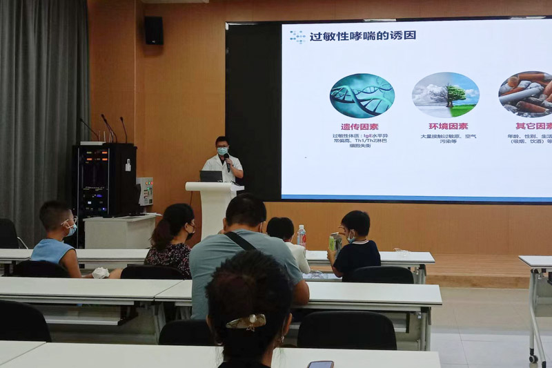 隨后,兒科呼吸專科醫生和護士進行專題的講座,以 “過敏有因,拒絕反復哮喘”為主題,講解了哮喘的危害、影響因素,還現場教家長們如何識別過敏性哮喘,針對哮喘反復,什么時候應該就醫及相關檢查的意義(如過敏原檢查,肺功能)等進行解答。并將過敏性疾病的治療原則和管理向家長詳細道來,就生活中如何采取有效措施控制室外、室內環境中的過敏源、營養策略進行了講解。