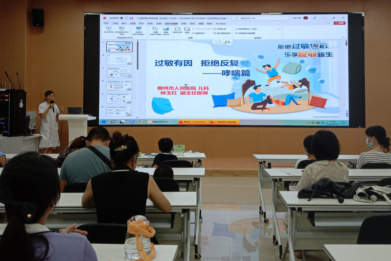 兒童呼吸道過敏性疾病已成為21世紀常見慢性非傳染性疾病之一,嚴重影響了兒童生活質量,也給家庭帶來沉重經濟負擔。常見的兒童呼吸道過敏性疾病包括過敏性鼻炎、過敏性哮喘等,為進一步普及呼吸道過敏性疾病的知識,樹立患兒及家長對過敏性疾病規范化診治的正確認識, 近日,柳州市人民醫院兒科舉辦了“呼吸道過敏性疾病”的主題患教會,共有30余名家長攜孩子參加。