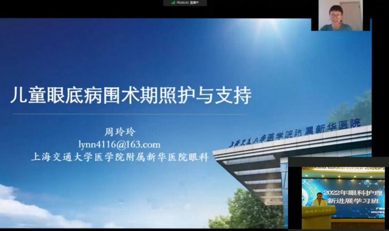 學習班邀請到了上海交通大學附屬新華醫院周玲玲、廣東省中醫院彭素清、西安市第四醫院張蓓、廣西醫科大學第一附屬醫院曾進等專家就《兒童眼底病圍術期照護與支持》《腕踝針在眼部疼痛中的臨床應用》《青光眼期間手術護理與管理》《高校教師資格教學技能考試注意事項》等課題進行線上授課。