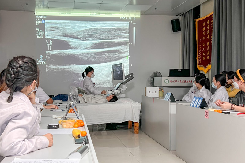 本次比賽的參賽選手為2020級、2021級、2022級住培學員,參賽隊伍共5支,本次比賽不僅是對個人綜合能力的檢驗,更重要是對團隊配合的考察,隊員們要團結協作,配合默契才能贏得比賽。技能操作范圍包括腹部、甲狀腺、頸部血管、心臟等器官的標準切面及測量,理論比賽內容包括三基知識和超聲醫學知識。