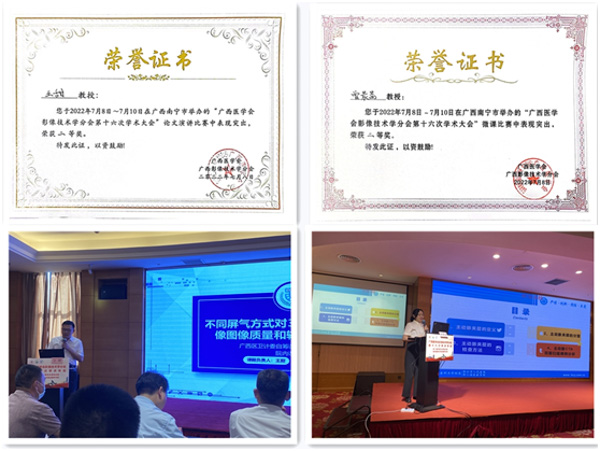 2022年7月8-10日,“廣西醫學會影像技術學第16次學術大會、第二屆影像后處理培訓班暨影像新技術新進展學習班”在南寧成功舉辦。本次學術大會內容豐富多彩,形式靈活多樣,開設了論文演講比賽、疑難問題專家解答環節,并首次開展了微課比賽。在大賽中,柳州市人民醫院放射科技術團隊收獲頗豐,技師王甜榮獲論文演講比賽二等獎,技師曾晨茜榮獲微課比賽二等獎。