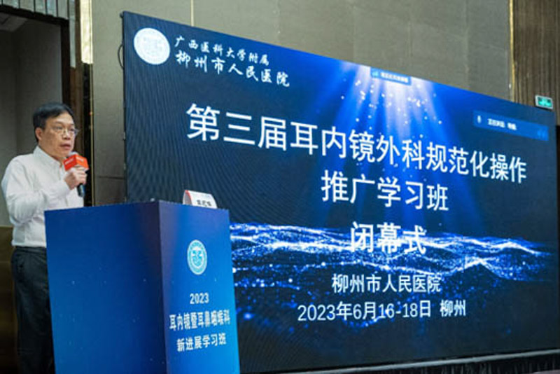 最后,柳州市人民醫院耳鼻咽喉科主任李紀輝主任為大會總結。他表示,隨著社會的發展及生活質量的提高,人們對耳鼻咽喉頭頸外科尤其耳科手術要求越來越高,不光要盡可能清除病灶,還要保護并提高聽力,減少對耳部周圍組織的創傷。本次會議作為近三年來首次的線下學習,通過專家專題面對面的講解、答疑以及細致的分享,使大家對耳內鏡手術的理論、技術規范、發展現狀及未來的展望有了深入的認識,促進了區內外耳科學者的交流與合作,推動耳內鏡事業的發展。
