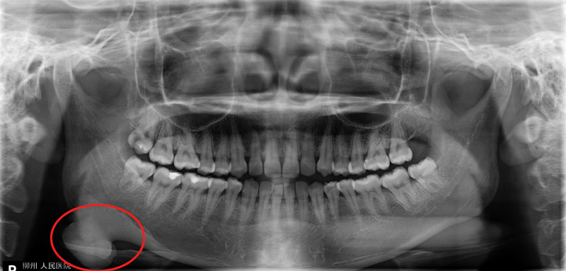 口腔科副主任醫(yī)師劉彥杰為唐女士做了仔細(xì)檢查,發(fā)現(xiàn)不是唐女士的臉越長越“方”,而是一顆骨性瘤子在作怪,這顆骨瘤正好就長在右側(cè)下頜角的位置。