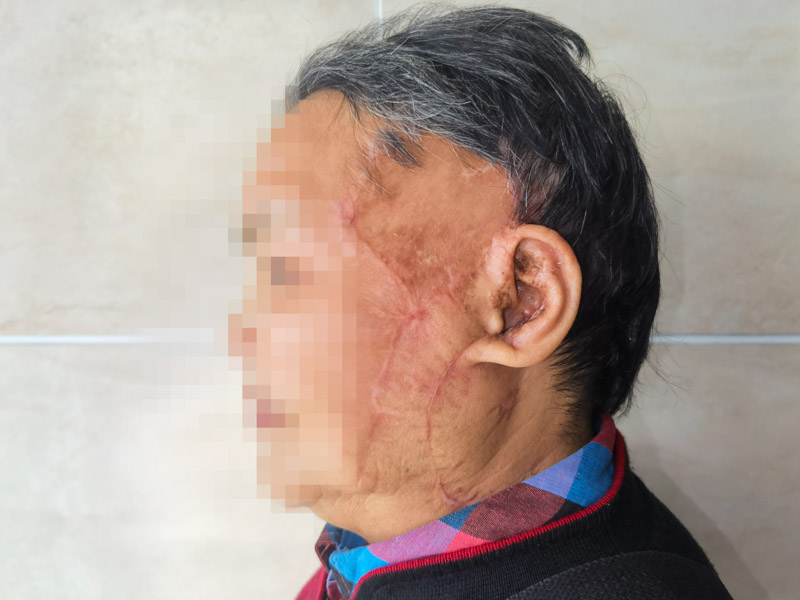 年逾古稀的楊阿婆打小記事起左臉上就開始長出一些密密麻麻的“肉球”,隨著年齡增長,“肉球”面積逐漸增大且蔓延到頸部。這對她的生活造成了很大的影響,家里人也十分苦惱,多年來四處求醫但是并沒有得到解決方案。