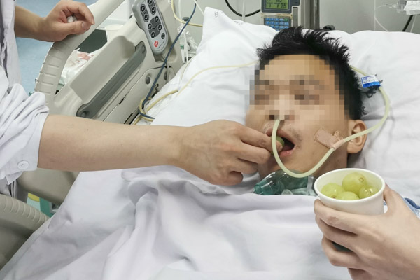 在2021年醫(yī)師節(jié)這一天,蔡天斌副主任醫(yī)師來(lái)到阿正床旁,給數(shù)日未經(jīng)口進(jìn)食的阿正吃上了葡萄,阿正說(shuō)這是他這輩子吃到最甜的葡萄,這也是阿正送給所有醫(yī)生最厚重的節(jié)日禮物!后續(xù)阿正轉(zhuǎn)入普通病房進(jìn)行康復(fù)治療,9月7日阿正康復(fù)出院。